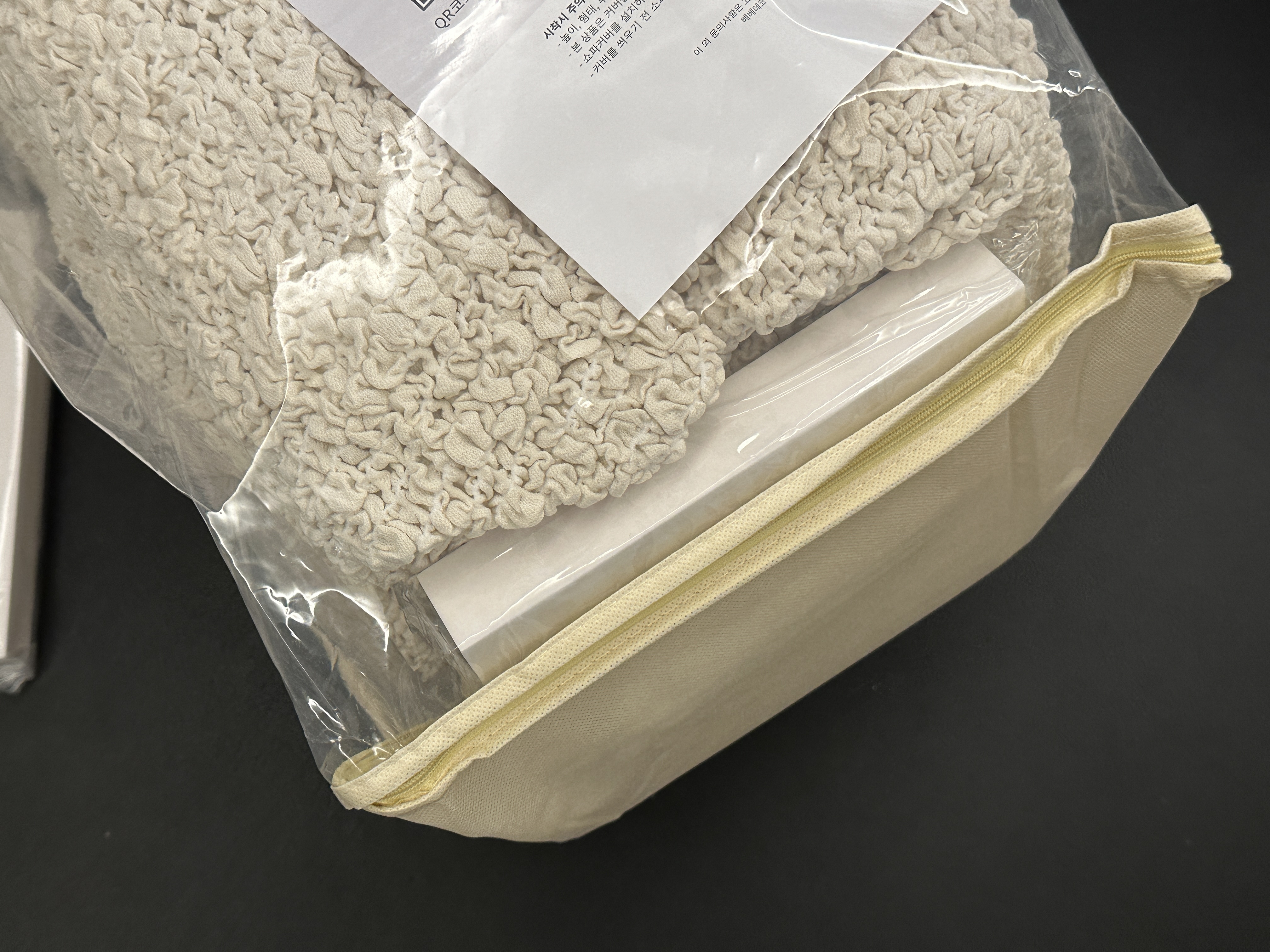 케이스에 담겨있는 소파 커버.
