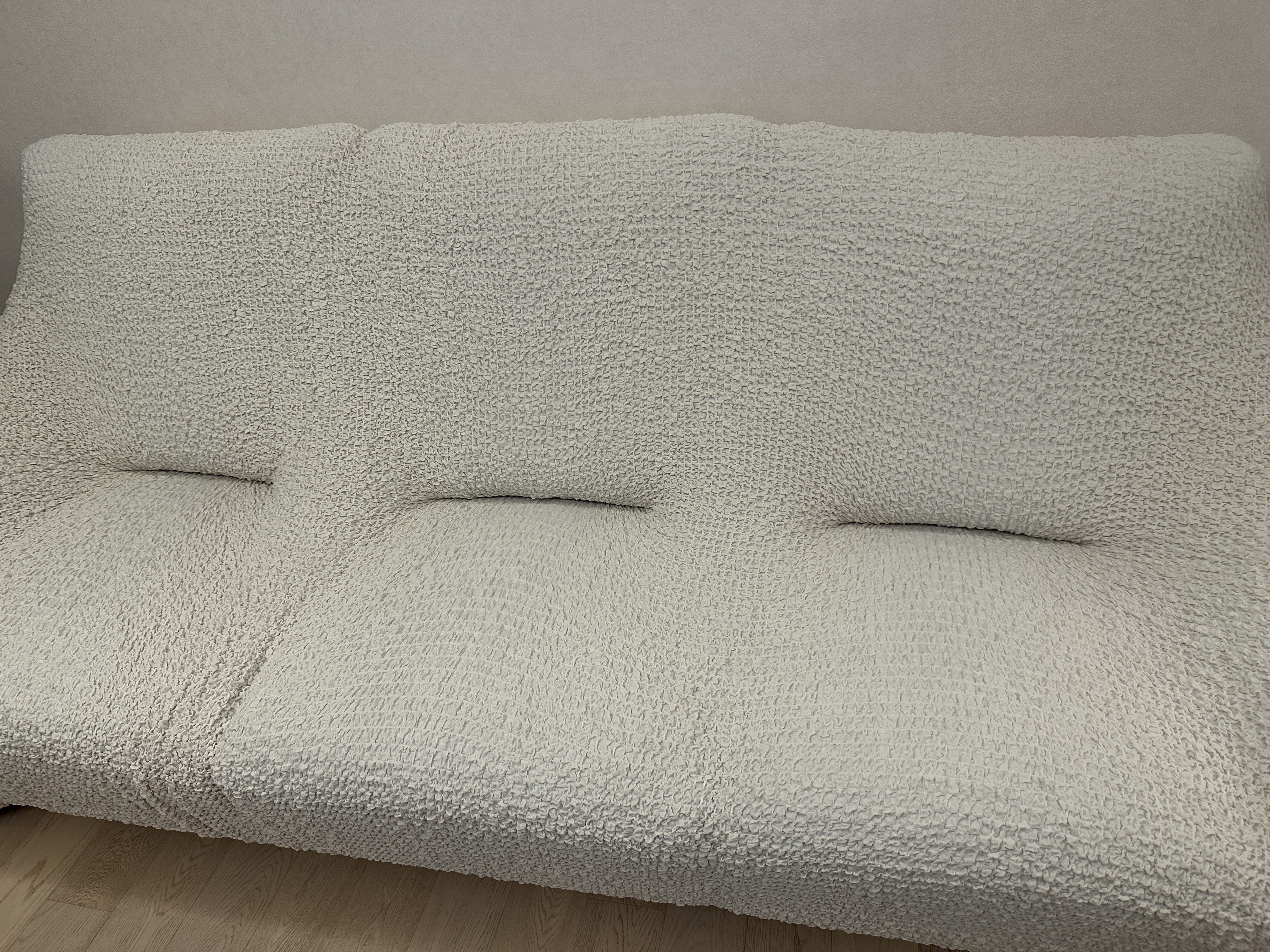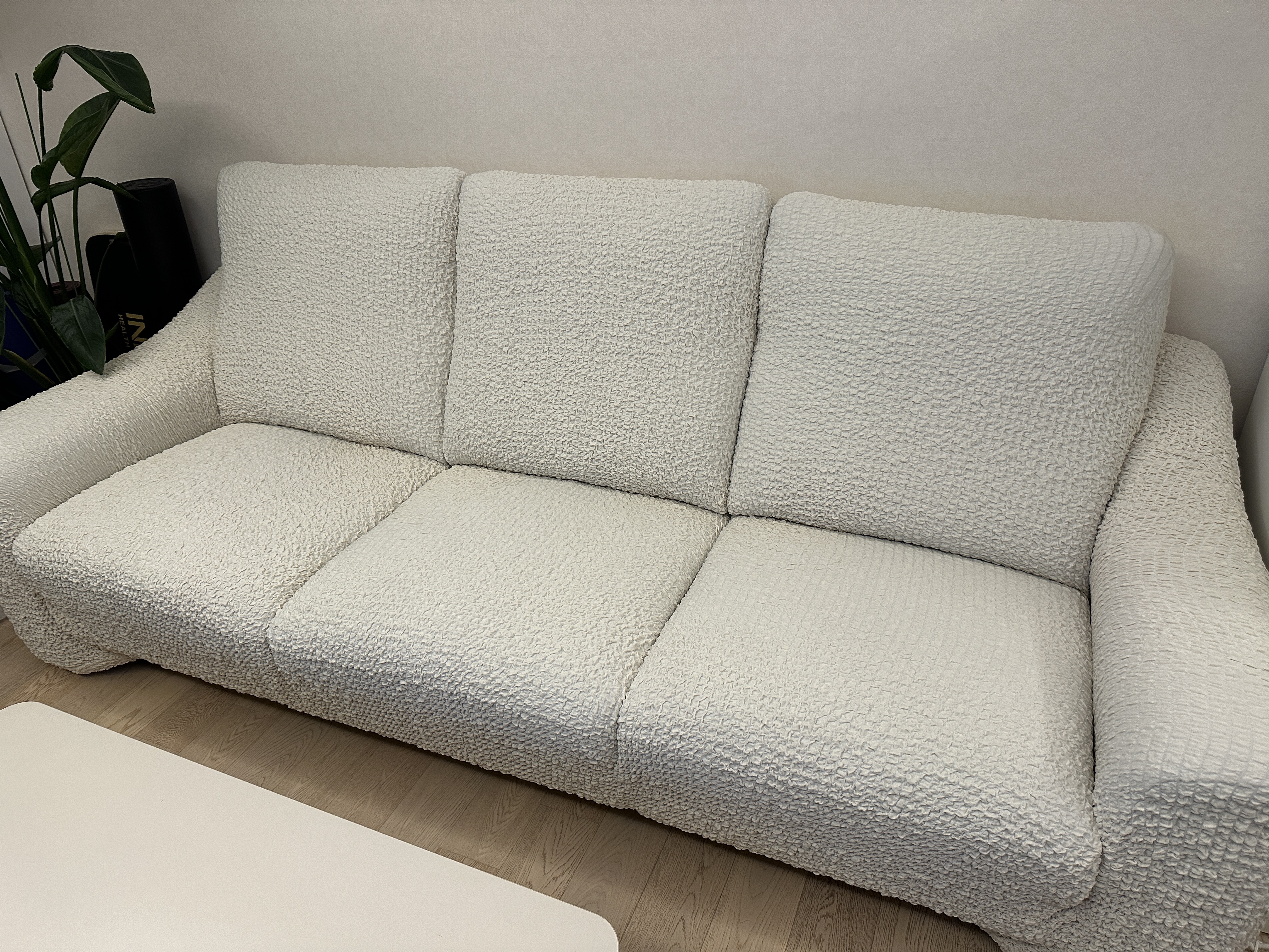 소파 커버를 씌우고 난 모습이