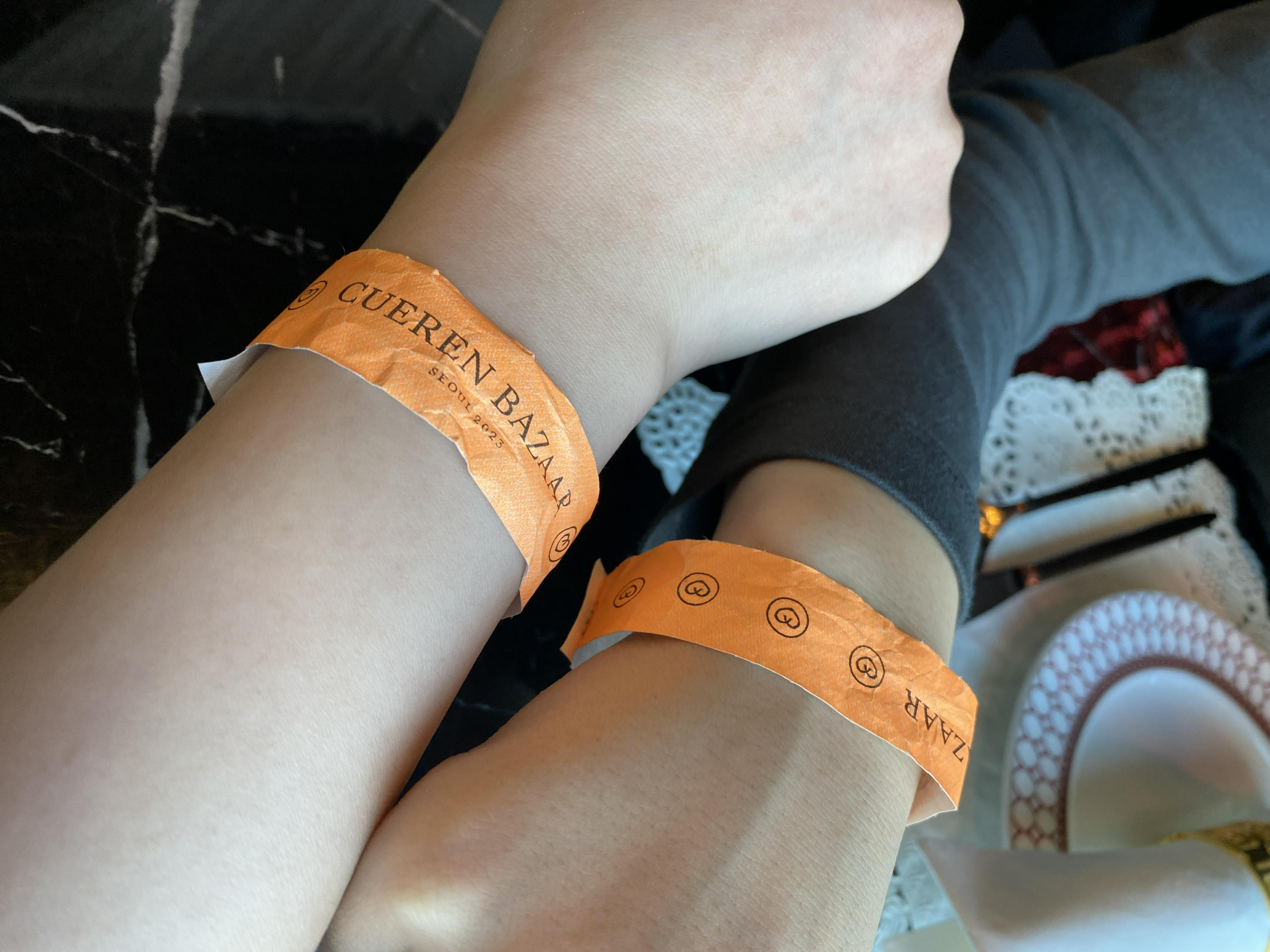 시작 전에 못 찍어서 끝나고 팔찌 빼기 전에 찍었더니 다 구겨졌음.. 다른 블로거 분들 왜 구겨져 있었는지 알 것 같았던 포인트.