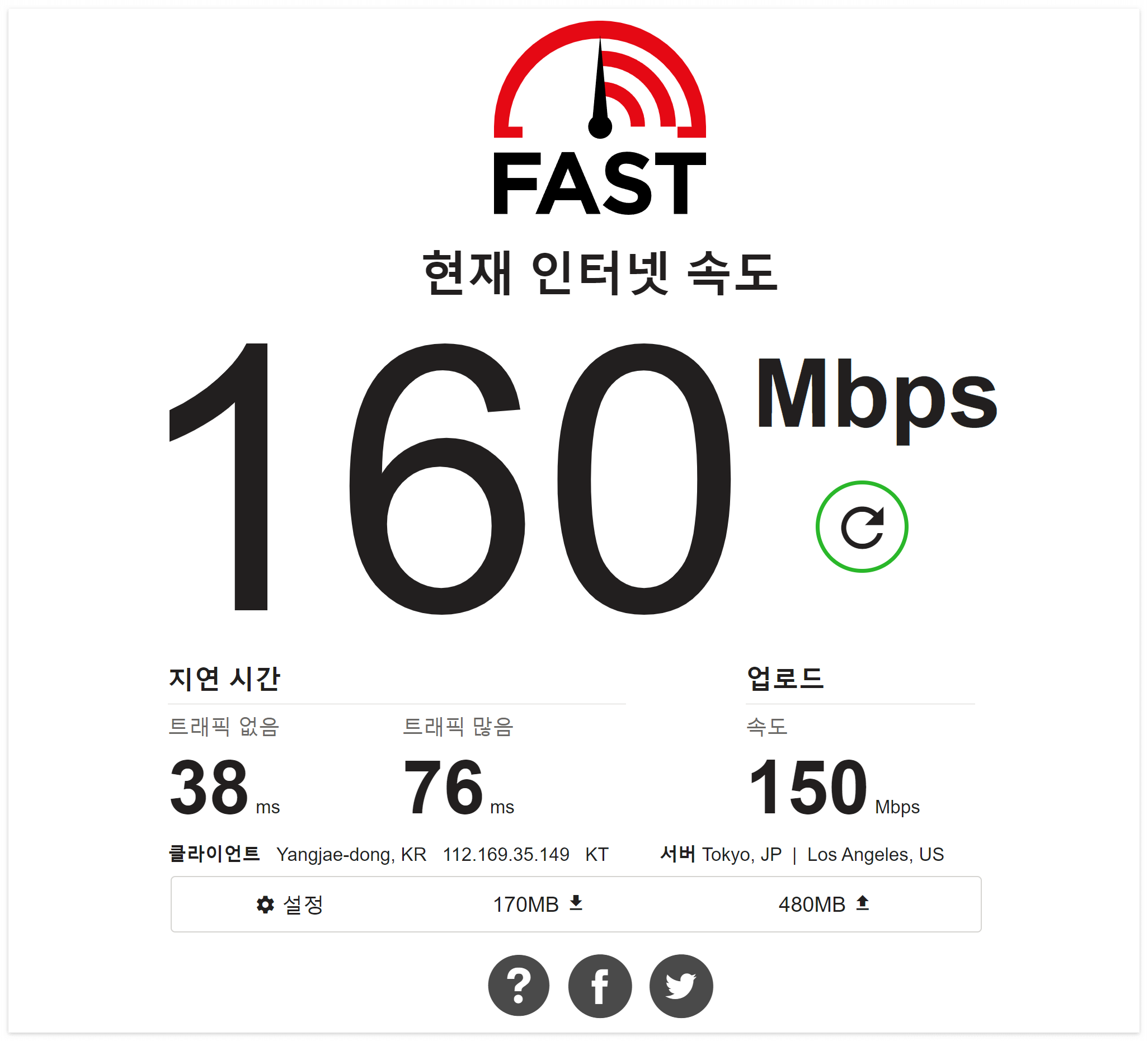 위에 첨부한 인터넷 속도 빠르기를